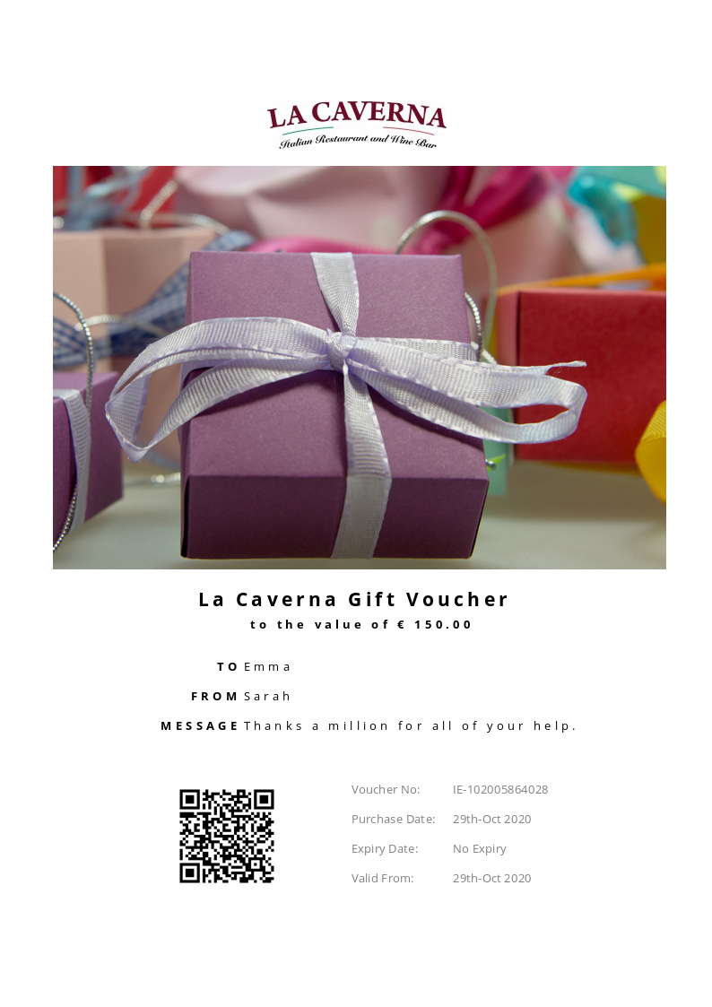 La Caverna allows you to purchase instantly printable gift vouchers, special offers and tickets using the Voucher Connect platform.